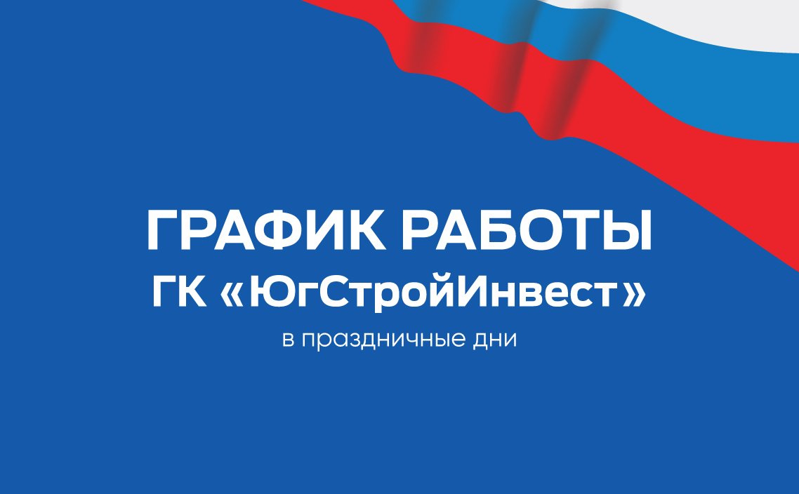 Офис ГК “ЮгСтройИнвест” в праздничные дни для вашего удобства будет работать по следующему графику:
