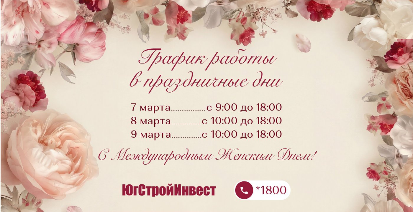 В праздничные дни офисы продаж ГК «ЮгСтройИнвест» будут работать по следующему графику: