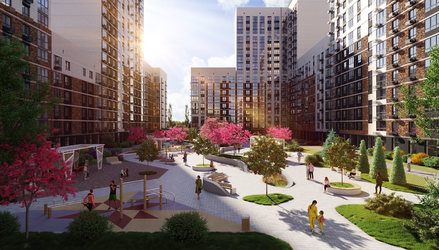 Дворы квартала полностью свободны от машин — здесь безопасно, тихо и просторно. 16 домов переменной этажности (от 6 до 18 этажей) откроют жителям виды на рассветы и закаты над зелёными кварталами. В шаговой доступности будет вся необходимая инфраструктура: три детских сада, школа, две поликлиники, а также физкультурно-оздоровительный комплекс.