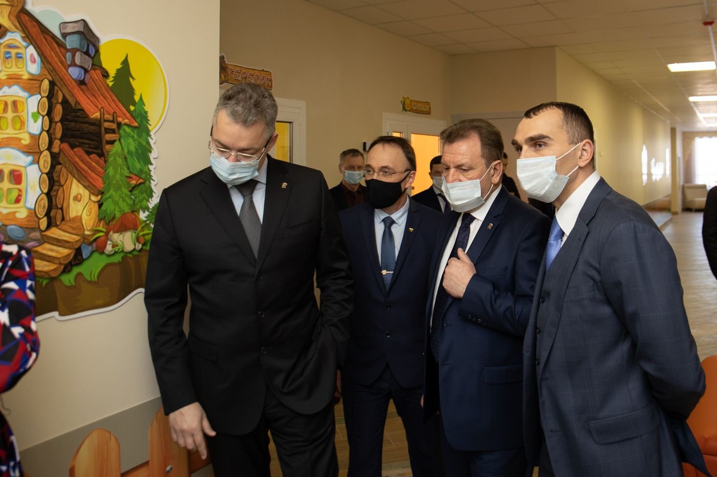 С маленькими воспитанниками познакомились губернатор Владимир Владимиров, глава Ставрополя Иван Ульянченко и заместитель генерального директора группы компаний “ЮгСтройИнвест” Алексей Иванов.