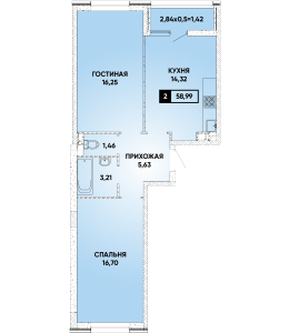 2-комнатная квартира 60,28 м2