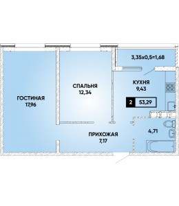 2-комнатная 53,29 м2