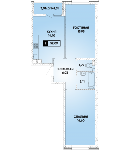 2-комнатная 59,09 м2