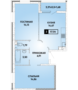 2-комнатная 57,54 м2