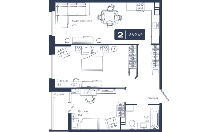 2-комнатная квартира 66,90 м2