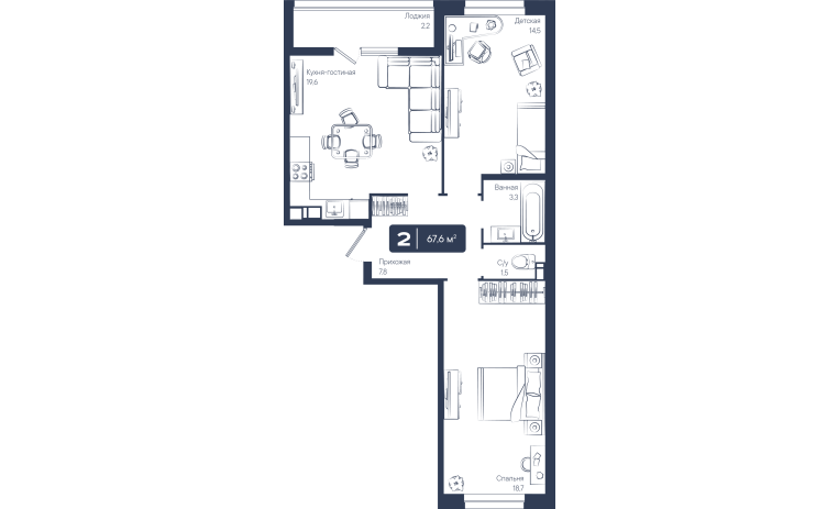 2-комнатная квартира 67,60 м2