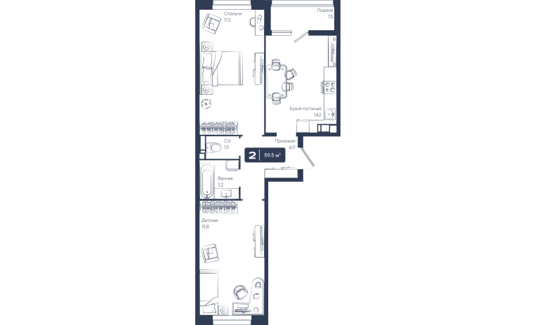 2-комнатная квартира 59,50 м2
