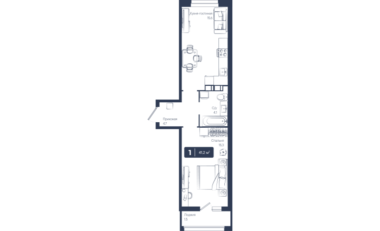 1-комнатная квартира 41,20 м2